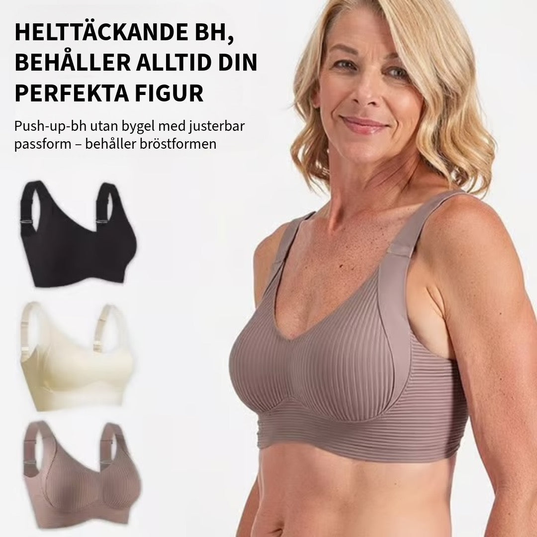 Med justerbara knäppningar och elastiskt material formar sig BH:n efter din kropp och ger mjukt stöd från morgon till kväll. Perfekt för arbete, avkoppling och till och med under natten.
