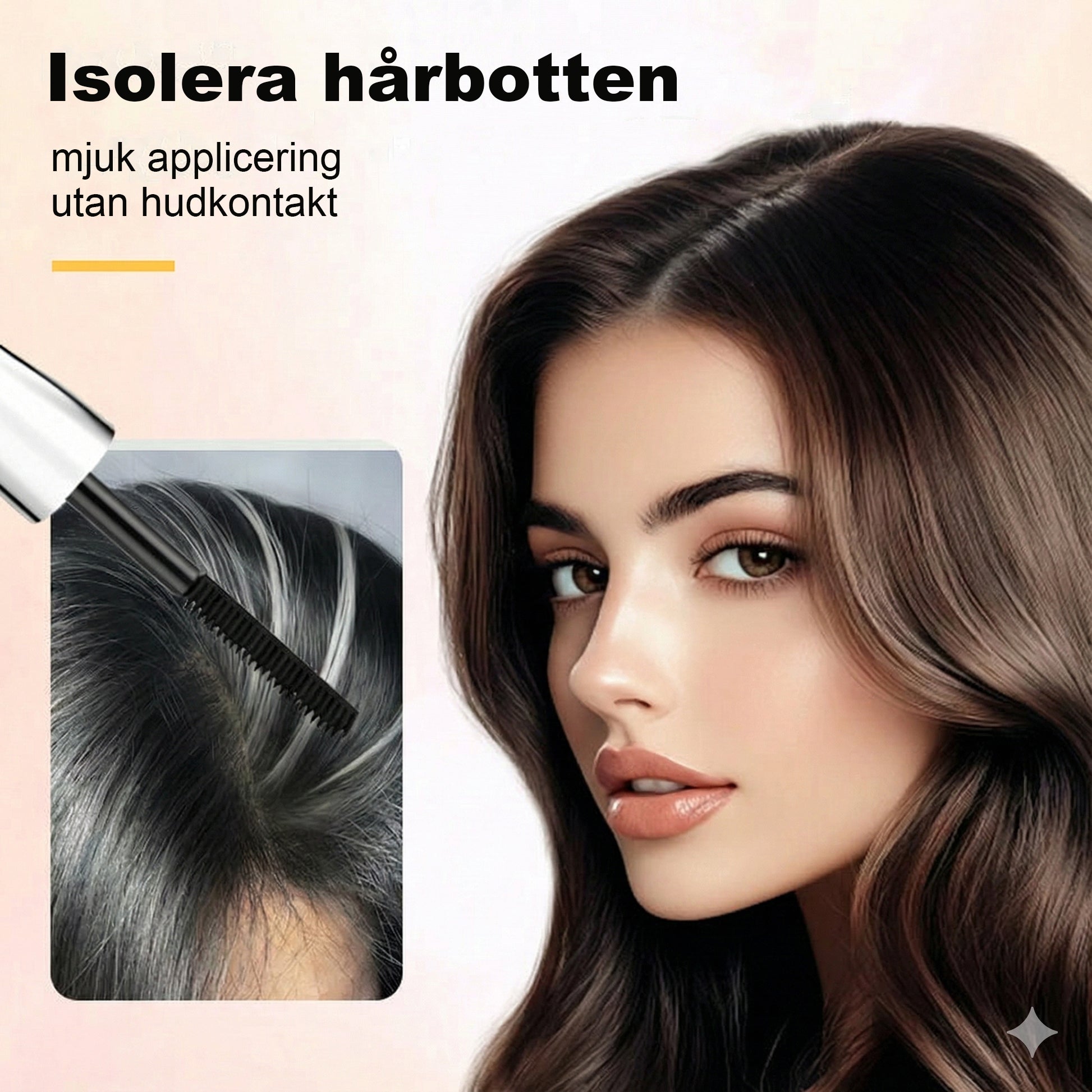 Applicera på det område som ska täckas, kamma tillbaka håret och stryk försiktigt över grå hårstrån eller utväxt tills det är täckt.